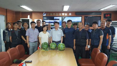 [시사인경제]안산시 환경에너지교통국은 전국적인 폭염 상황이 심각해지고 장기화되고 있는 가운데 녹지과 소관 각 사업장을 방문해 준비해 간 수박을 전달하면서 더위에 지친 근로자를 위로하고 격려하는 시간을 가졌다.