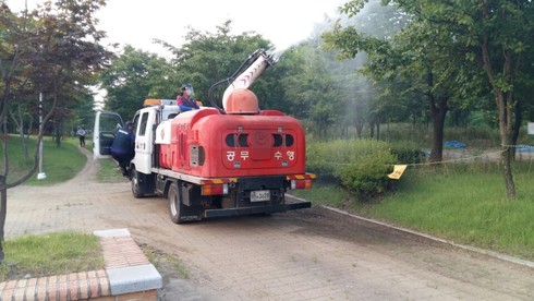 특히 각 동사무소에 동력분무기 및 물탱크 등 방역도구와 약제를 지급해서 지역 자체방제를 유도하고 있으며, 아파트 단지와 농가의 자체방역을 적극 유도해 방제효과를 높이기 위해 노력하고 있다.