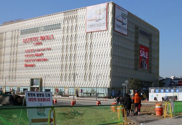'롯데몰 수원'은 백화점, 쇼핑몰, 마트, 시네마 등 전관을 지난해 11월 27일 오픈했다. 대지 4만3,000㎡(1,300여평)에 연면적 23만4,000여㎡(70,800여평), 지하 3층 지상 8층 규모로 주차대수도 2,320대에 이른다.