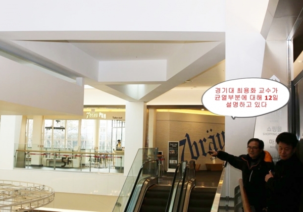 이어 최 교수는 "롯데몰 수원은 철제구조로 건축돼 균열이 발생한 부분들은 철재를 둘러싼 석고보드 마감재에서 발생한 것으로 쇼핑객들이 육안으로 봤을 경우 심각한 우려를 자아낼 수 있어 바로 보수공사를 해야 하는 것인데 롯데몰 측이 방치하고 있는 부분에 대해선 아쉬움이 크다"고 지적했다.