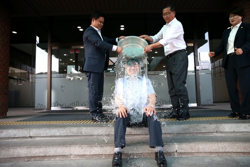 박 시장은 이날 얼음물을 뒤집어쓰며 환자들의 고통을 느끼고 쾌유를 기원했으며, 이어 캠페인에 참여할 동참자를 지목할 예정이다.