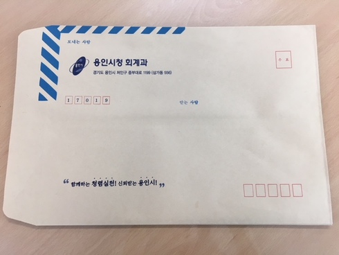 | 용인시 회계과에서 ‘청렴실천’을 위해 찍은 행정봉투 |