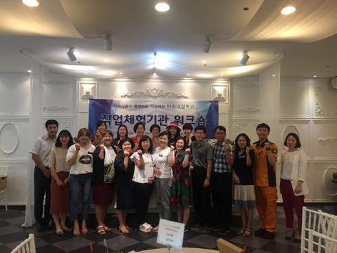 이번 워크숍에는 소통 및 힐링 프로그램을 진행하여 바쁜 일상속에서도 미리내일학교 운영에 힘써주신 직업체험기관 담당자들에게 격려와 휴식의 기회를 제공하였으며 자유 분임토의 시간에는 직업체험기관 담당자들의 교류와 미리내일학교의 발전방안을 고민하는 시간을 가졌다.