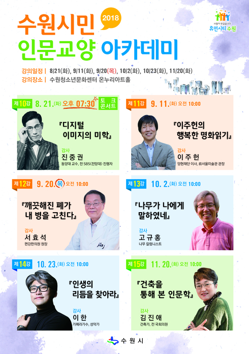 [시사인경제]수원시는 2018년 8월부터 오는 11월까지 시민을 대상으로 온누리아트홀에서 ‘수원시민 인문교양 아카데미’를 진행한다.