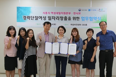[시사인경제]시흥시 여성새일지원본부는 지난 14일 여성비전센터에서 안산·시흥지역 엄마들의 SNS 커뮤니티 ‘안시모’와 경력단절여성 일자리 창출 및 여성 인력 개발을 위한 업무협약을 체결했다.