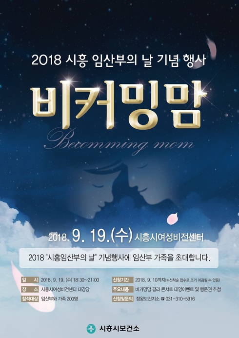 이번 행사는 오는 9월 19일 오후 6시 30분부터 시흥시여성비전센터에서 열린다. 예비·임신부부 시민 등 300명을 초대해 가족 태교 뮤지컬 갈라콘서트 ‘비커밍 맘’이 공연된다.