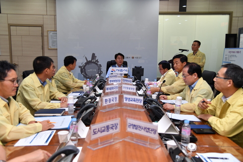 시흥시는 임병택 시장 주재로 관련 실국장 전원이 참석한 가운데 ‘솔릭’대비 대책 점검 회의를 진행하고 철저한 대비책을 강구했다.