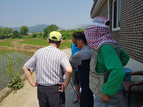 | 처인구가 신원1지구에서 토지주들과 경계 협의를 하는 모습 |