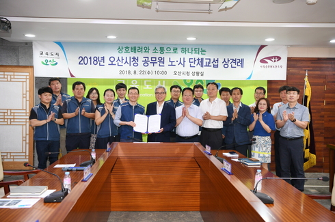 곽상욱 오산시장은 “노사는 대립과 갈등의 관계가 아니라 시민의 희망과 행복을 위해 함께 노력하는 협력과 배려의 동반자”라며 “노사가 상생·협력 관계를 만드는 단체교섭이 되도록 노력하고 합의된 사항을 법령과 예산 범위 안에서 적극적으로 지원하겠다.”고 말했다.