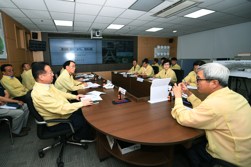 [시사인경제] 오산시는 지난 23일 제19호 태풍“솔릭”북상에 따라 곽상욱 오산시장 주재로 재난안전상황실에서 국·소장 및 재난협업 부서장들이 참석한 가운데 긴급 대책회의를 개최했다.