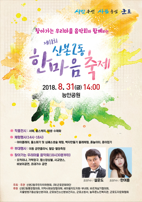 [시사인경제] 군포시는 오는 31일 능안공원에서 주민화합 및 주민자치센터 활성화를 위한 ‘제18회 산본2동 한마음축제’를 개최한다.