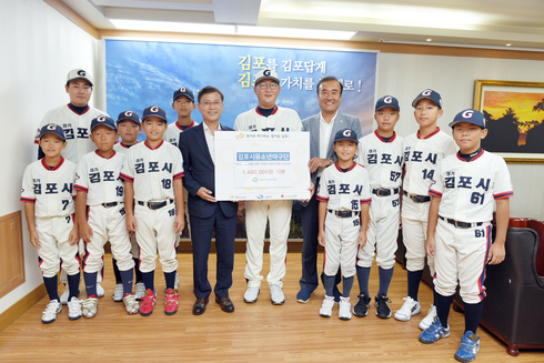 [시사인경제] 김포시유소년야구단이 지난 24일 김포시청을 찾아 대회우승상금을 불우이웃돕기 성금으로 전액 기탁했다.