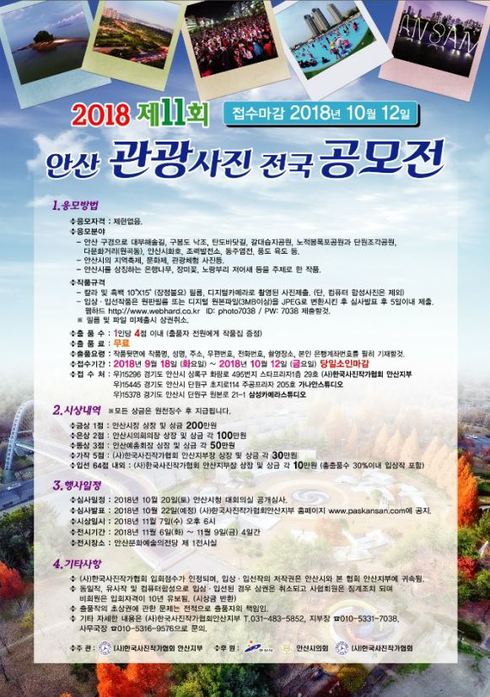 자세한 사항은 안산시 관광홈페이지의 공지사항 또는 한국사진작가협회 안산지부로 문의하면 된다.