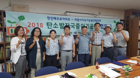 의왕시지속가능발전협의회는 지난 9일 한진해모로아파트와의 탄소발자국 줄이기 운동 협약에 이어 28일에는 동아에코빌아파트와 협약식을 갖고, 각 세대의 에너지 진단 및 모니터링·에너지 절약 교육 실시 등 탄소발자국 줄이기 운동을 공동 추진하기로 상호 약속 하였으며, 이후 세대 에너지 진단을 실시하고, 최종적으로 오는 11월에는 우수 참여가구 시상식을 갖는다.