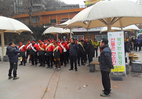 구본습 건설과장은 “금년에는 건조 일수의 증가와 적설량의 감소 등으로 대형 산불 발생 위험이 높다. 산불로부터 장안구의 명산인 광교산을 지키기 위해서는 빈틈없는 순찰 활동은 물론 산을 찾는 시민들의 각별한 주위가 필요하다. 우리 모두 산불방지와 청정한 광교산을 지키기 위해 다 같이 노력하자”고 말했다.