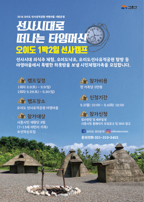 한편, 오이도 선사유적공원은 시민체험단을 대상으로 오는 9월 8일과 9일, 오는 9월 29일과 30일 2회에 걸쳐 ‘오이도 1박2일 선사캠프’를 진행할 예정이다.