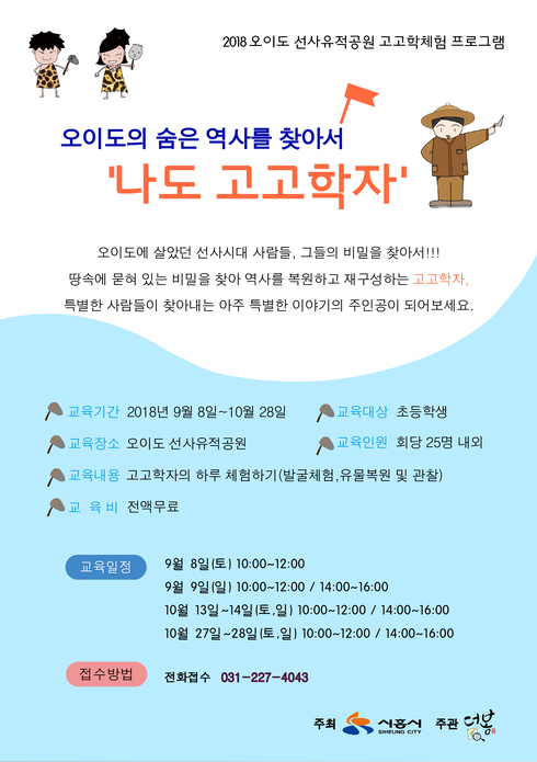 [시사인경제] 시흥시는 고고학자의 하루를 체험해보는 ‘나도 고고학자’ 프로그램을 오는 9월 8일부터 10월 28일까지 오이도 선사유적공원에서 진행한다.
