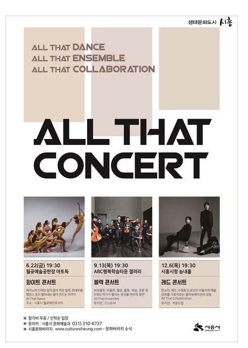 시흥시민의 문화예술 향유와 창조력 함양을 위해 진행되어 온 〈올 댓 콘서트〉의 두 번째 에피소드 〈블랙 콘서트〉를 통해 사랑하는 가족, 연인, 친구와 함께 힐링하는 시간을 보낼 수 있기를 기대한다.