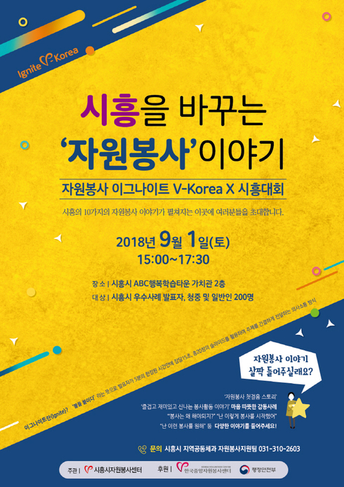 시흥을 바꾸는 자원봉사 이야기는 청소년 및 성인 등 다양한 연령대가 참여하여 공감과 감동이 있는 자원봉사 스토리를 발굴, 공유하고 감동을 나누기 위해 마련한 장이다.