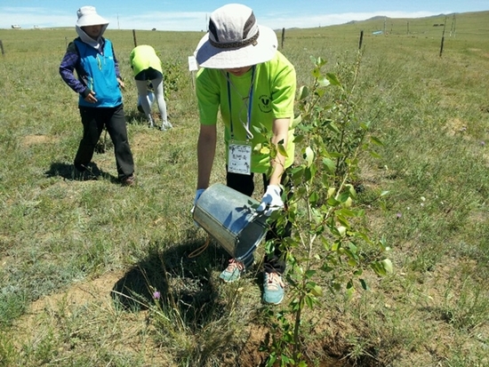 몽골 봉사단은 지난 25일부터 29일까지 4박5일간 몽골 에르덴솜에 있는 ‘수원시민의 숲’ 조림지에서 사막화방지를 위한 조림활동과 환경실태 체험 등의 프로그램을 진행했다. 봉사단은 현지의 물 부족과 더운 날씨 및 생소한 음식문화 등에도 불구하고, 나무를 심기 위한 구덩이 파기와 물 공급을 위한 저수조 만들기, 묘목에 물주기 등의 활동을 펼쳤다.
