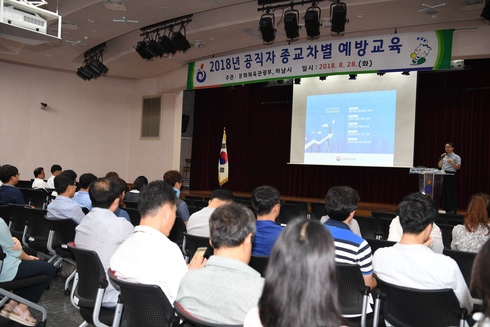 공직자 100여명이 참여한 이번 교육은 안신 배재대학교 종교학과 교수를 초청해, 공직자의 의무사항인 종교중립에 대한 중요성을 강조하고 종교에 의한 차별 없이 공정한 직무수행을 유도할 수 있는 시간을 가졌다.