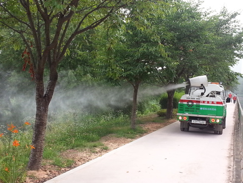 먼저 침수주택 주변에 연막소독을 실시하고 물이 빠지지 않은 웅덩이 지역에 유충구제를 실시한다.