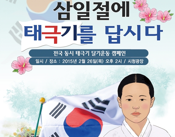 시 관계자는 “광복 70주년의 첫 국경일인 3·1절을 맞아 순국 선열들의 위업을 기리기 위해 이번 캠페인을 추진하게 된 것”이라며 “전국 동시 태극기 달기 운동을 통해 나라사랑 정신을 되살리는 계기가 될 수 있도록 적극적인 캠페인을 펼쳐 나가겠다”고 말했다.