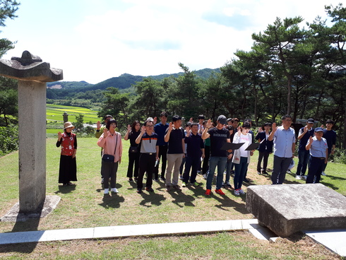| 청렴동아리 회원들이 전남 장성군 박수량 백비 앞에서 청렴 서약을 하고 있다. |