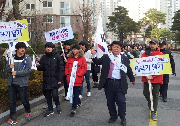 매탄1동 주민센터 관계자에 따르면 주민들의 태극기달기운동 참여를 이끌어 내기 위해 태극기달기 홍보 방송을 하고 있고, 오는 3․1절까지 단체원, 청소년들이 함께하는 태극기달기 운동 거리 캠페인을 집중적으로 펼질 예정이다.