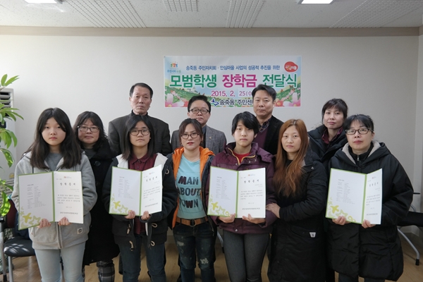 이번 장학금은 평소 마을일에 앞장서서 봉사하는 송죽동 안심마을주민추진협의회 백인복 회장이 성실하게 학업에 정진하는 학생들에게 전달해 달라며 기부한 금액으로, 자라나는 우리의 학생들을 생각하는 훈훈한 마음이 담겨 그 의미가 크다.