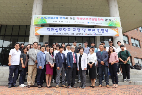 [시사인경제] 오산시보건소는 지난 13일 오산대학교를 치매극복선도학교로 지정하고 현판식을 개최했다고 밝혔다.