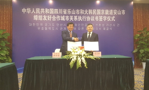 [시사인경제] 안산시와 중국 러산시가 우호 협력 도시 관계 수립에 따른 실행 합의서를 체결하고 경제, 문화, 체육, 청소년 분야 등 시정 전 분야에 걸쳐 교류와 협력을 강화하기로 합의했다.