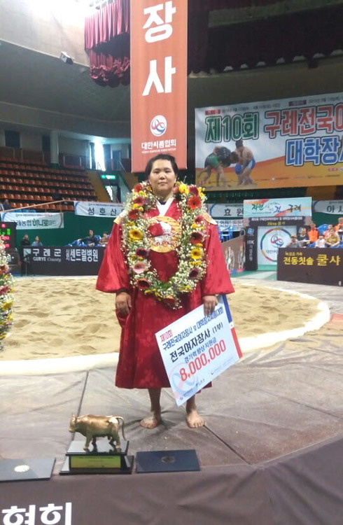 최희화 선수는 지난 16일 구례실내체육관에서 열린 제10회 구례 전국여자장사 씨름대회에서 2017년 천하장사 씨름대회 여자 천하장사에 등극한 바 있는 임수정 선수를 상대로 치열한 접전 끝에 구례 여자장사에 올랐다.