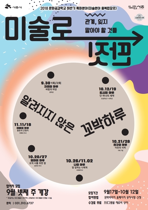 [시사인경제] 시흥시는 2018 문화공감학교 하반기 특화분야 〈미술로 딴 짓 – 알려지지 않은 꼬박 하루〉 프로그램 참여자를 모집한다.