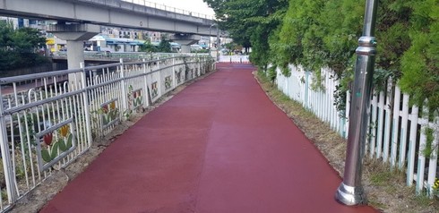 이와 함께 신갈천 제방길 신일아파트∼풍림아파트를 잇는 산책로 140m에는 기존 콘크리트 포장이 노후해 이를 걷어내고 미끄럼방지 바닥재를 깔았다.