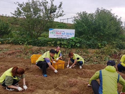 [시사인경제] 시흥시 4-H지도자협의회는 지난 9월 28일 시흥시 하중동에 위치한 4-H회 공동학습포장에서 고구마를 수확했다.