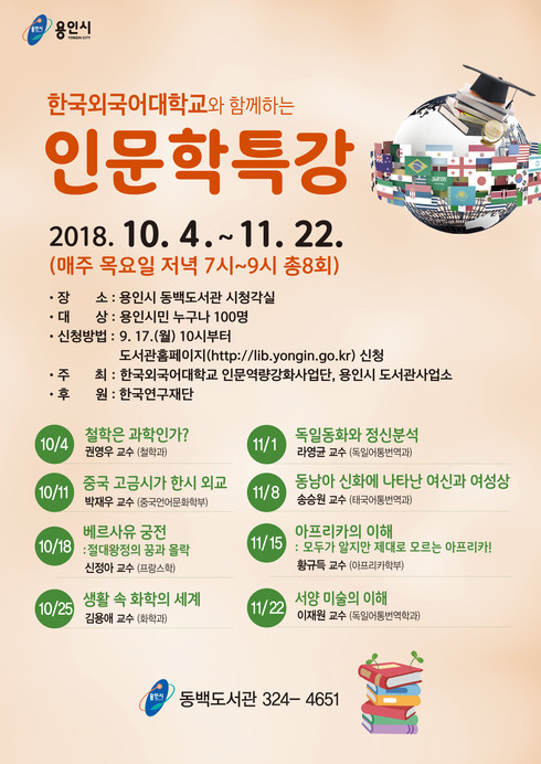 | 동백도서관의 한국외국어대와 함께하는 인문학 특강 포스터 |