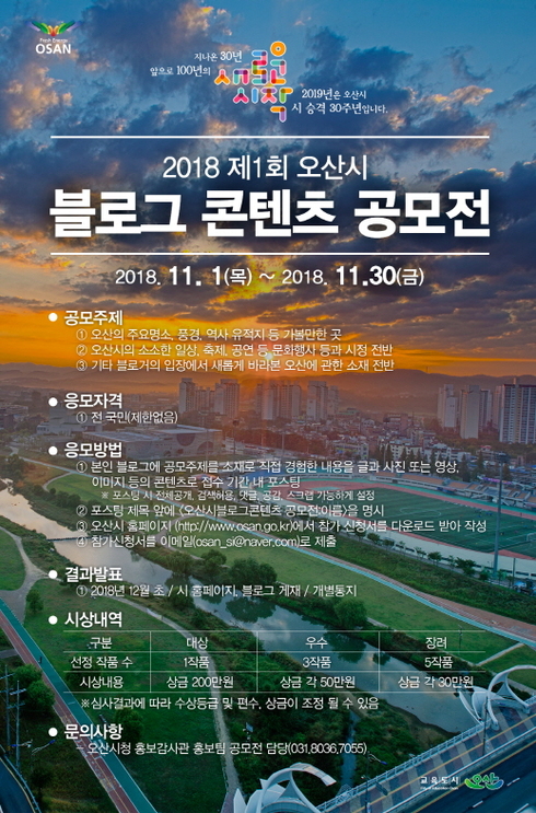 | 2018 제1회 오산시 블로그콘텐츠 공모전 포스터 |
