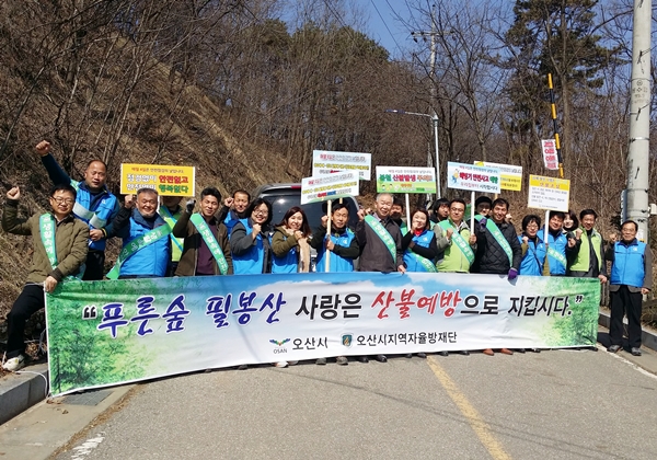 이번 캠페인에는 이홍진 오산시 안전도시국장과 안전총괄과 직원, 유중노 오산시 지역자율방재단장과 회원 등 40여명이 참여한 가운데 ‘푸른숲 필봉산 사랑은 산불예방으로 지킵시다’라는 주제로 캠페인을 전개하고 시민들에게 홍보 전단지를 배포했다.