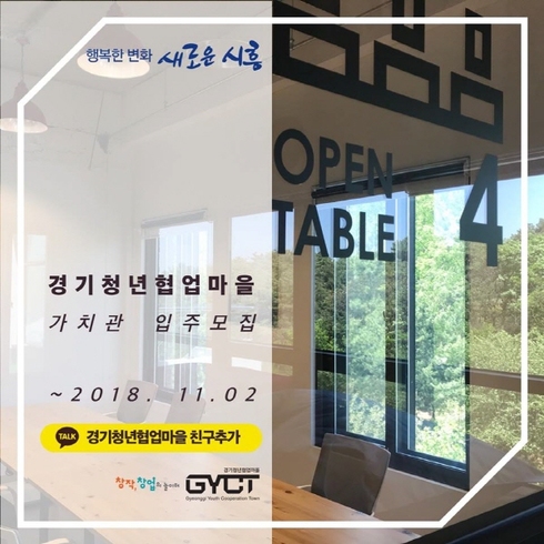 2016년 11월에 개관한 경기청년협업마을은 창업활동을 할 수 있는 사무실을 청년들에게 저렴한 금액으로 임대해주고 있다. 사무실로 활용할 수 있는 입주공간은 열림관에 있는 독립형 11개실과 가치관의 준독립형 13개실로 구성되어 있으며, 현재 20개 청년 기업이 입주하여 활발한 창업활동을 펼치고 있다. 이번에는 가치관 준독립형 입주공간 4개실에 대한 모집을 진행 중이다.