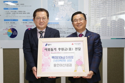 처인구는 25일 용인아산내과에서 1500만원 상당의 10kg짜리 백미 516포를 관내 어려운 이웃들을 위해 기탁해 올해만도 세 번째 대규모 기부를 했다고 밝혔다.