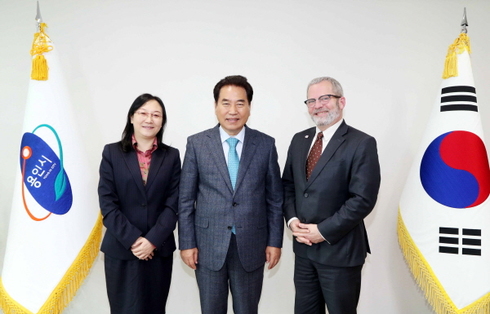 [시사인경제] 백군기 용인시장은 6일 시장실에서 중국 산둥성 위해시에 있는 북경교통대학 위해캠퍼스 관계자 6명을 접견하고 한·중 교육 교류협력을 논의했다.