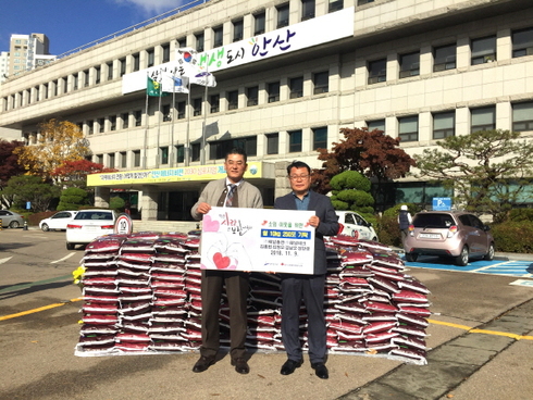 [시사인경제] 안산시 고잔동에 위치한 ㈜패널총판은 지난 9일 지역의 어려운 이웃을 위해 사용해 달라며 쌀 10kg 250포를 기탁했다.