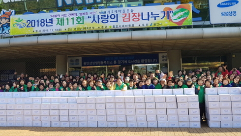 [시사인경제] 용인시는 13일 용인시 새마을회가 용인실내체육관 앞 광장에서 어려운 이웃들을 돕기 위한 ‘사랑의 김장 나눔 행사’를 열었다고 밝혔다. 이날 250여명의 새마을지도자들이 6톤의 배추로 10kg 김치 600박스를 담가 관내 홀로어르신과 한부모가정·차상위계층 등 450여가구와 새마을회가 운영하는 무료급식소에 전달했다.
