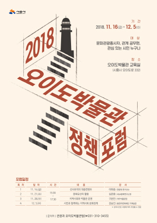 [시사인경제] 시흥시는 오는 16일부터 내달 5일까지 4회에 걸쳐 ‘2018 오이도박물관 정책포럼’을 개최한다. 이번 정책포럼은 시흥 오이도박물관과 지역사회가 상생할 수 있는 활용방안을 마련하기 위해 마련됐다. 지역 시민과 관계 공무원 등이 참여할 예정이다.