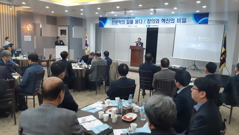 오산상공회의소에서 주관한 이번 세미나에는 홍웅식 한국직무능력개발원 원장을 초빙해"인문학의 길을 묻다 / 창의와 혁신의 비밀"이라는 주제로, 최근 악화된 경제상황 속에 혁신을 통해 기업들이 나아갈 방향에 대해 생각해보는 시간이 됐다.