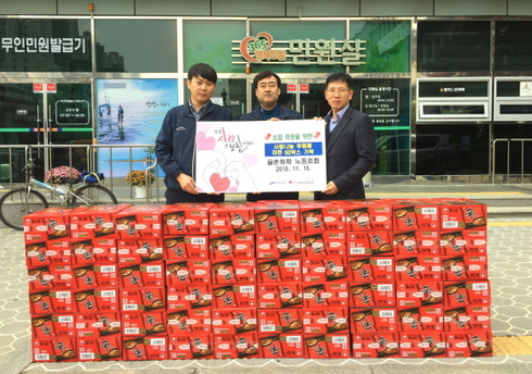 [시사인경제] 율촌화학 노동조합은 지난 16일 안산지역 소외계층에 전해 달라며 라면 60박스를 기탁했다.