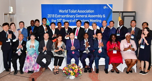 [시사인경제] 염태영 수원시장이 세계화장실협회 제4대 회장 자격으로 지난 21일 남아공 케이프타운 센츄리시티 컨퍼런스 센터에서 열린 세계화장실협회 ‘2018 임시총회’와 ‘제10차 정기 이사회’에 참석했다. 세계화장실협회가 주최한 이번 회의에는 9개 회원국 40여 명이 참석해 세계화장실협회의 사업 현황을 점검하고, 협회가 나아갈 방향을 모색했다.