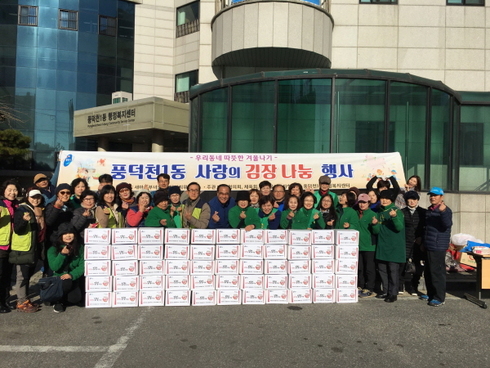 [시사인경제] 용인시 수지구 풍덕천1동은 23일 행정복지센터 앞마당에서 어려운 이웃을 돕는 ‘사랑의 김장나눔’ 행사를 열었다. 이날 새마을부녀회, 주민자치위원회, 통장협의회 등 6개 민간단체와 자원봉사자 등 40여명은 10kg짜리 50박스 분량의 김치를 담갔다.