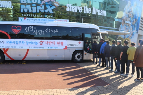 [시사인경제] 용인도시공사는 23일 직원 50여명이 ‘사랑의 헌혈’ 행사에 참여했다고 밝혔다. 이날 직원들은 대한적십자사 경기혈액원의 협조로 용인실내체육관 앞 광장에 설치한 헌혈차량에 줄지어 헌혈했다.
